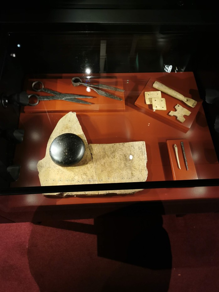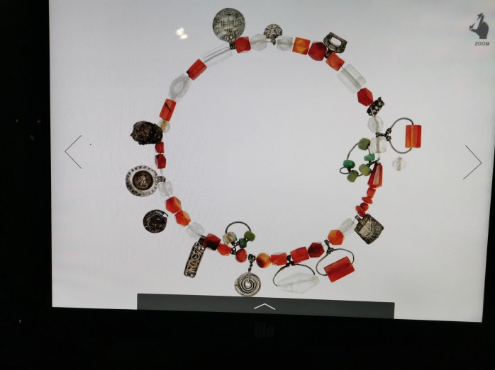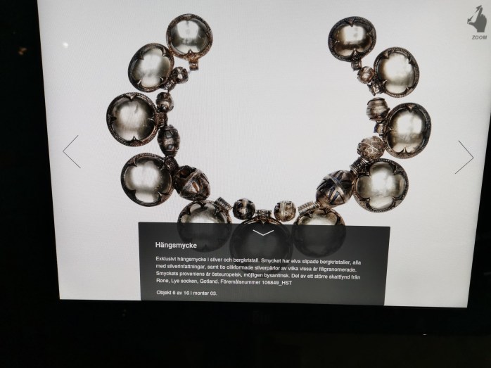 More about ancient history, an increasing interest of mine. This summer a new exhibition of Viking age items opened in the Historical Museum in Stockholm. It is said to be the biggest ever with over 2500 items. I like the way they let the items speak for themselves, they are all originals and have no reconstructions and wild guessings about how things might have been. Everything is rooted in facts and shows how much, or little, we know about this groundbreaking time 700-1000 AD, before Christianity called for a new era. Through movies, operas and books the picture of a Vikings has been both romantic and violent, and most exclusive In the meaning separate. In reality, the people in Scandinavia had a lot in common with all Germanic people, similar language, the same pagan gods, similar clothing, weapons and jewellery. They were also very receptive to foreign cultures; Islamic, Chinese and others. Fragments of silk fabric are very common in graves in Birka. A Budda figurine and Arabic coins are other examples.