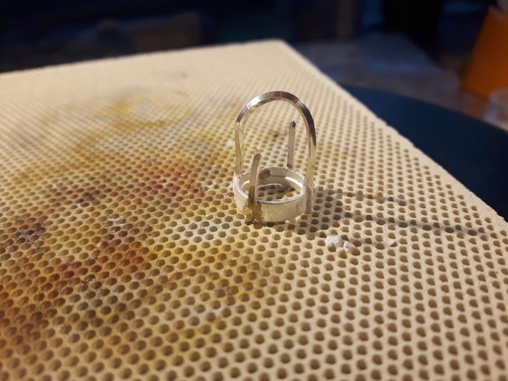 Another thing that makes things much easier is this rotating plate for soldering. I prefer charcoal for soldering, it reflects the heat and reduces oxidation. Disadvantages are that coal is dirty and that the block cracks easily when heated.