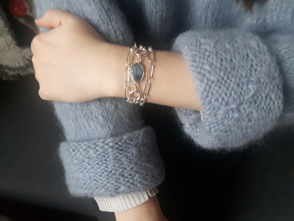 A simple chain that can be worn either as a bracelet or a necklace.The stone is kyanite.
