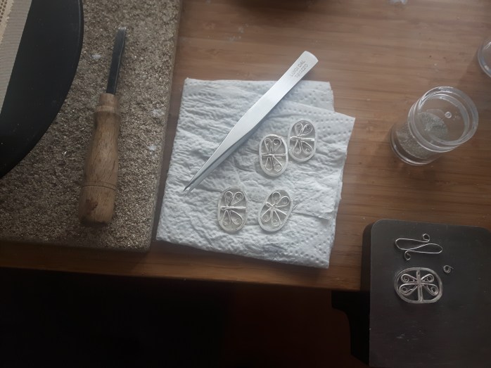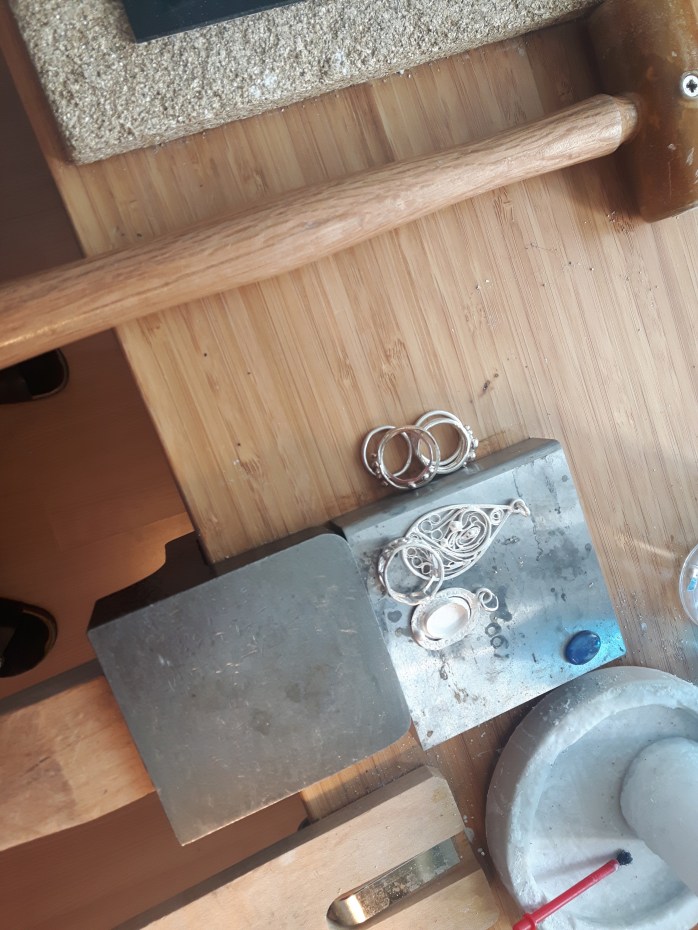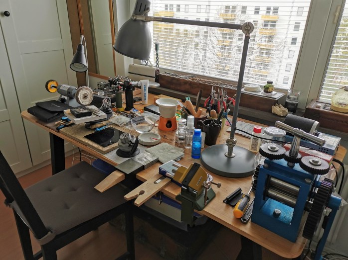 A few years ago I started silversmithing and it has become such a joy. I got inspiration from my son who had spent a summer at a workshop in Indonesia. He came home with the most amazing jewellary in silver filigree. Since that, I have gradually made a workshop of my own at home. The equipment is quite expensive so it has taken quite some time. And you never get enough tools, you always want more. There is also more to learn and that never stops. Youtube is an excellent source of knowledge and apart from that, I have spent a couple of weeks in a workshop in Cornwall in England, and a short course in filigree in Lisbon in Portugal, and a summer course in Sweden. But most important, your practice and your own mistakes are what make things go forward. And there are many mistakes it’s unavoidable!